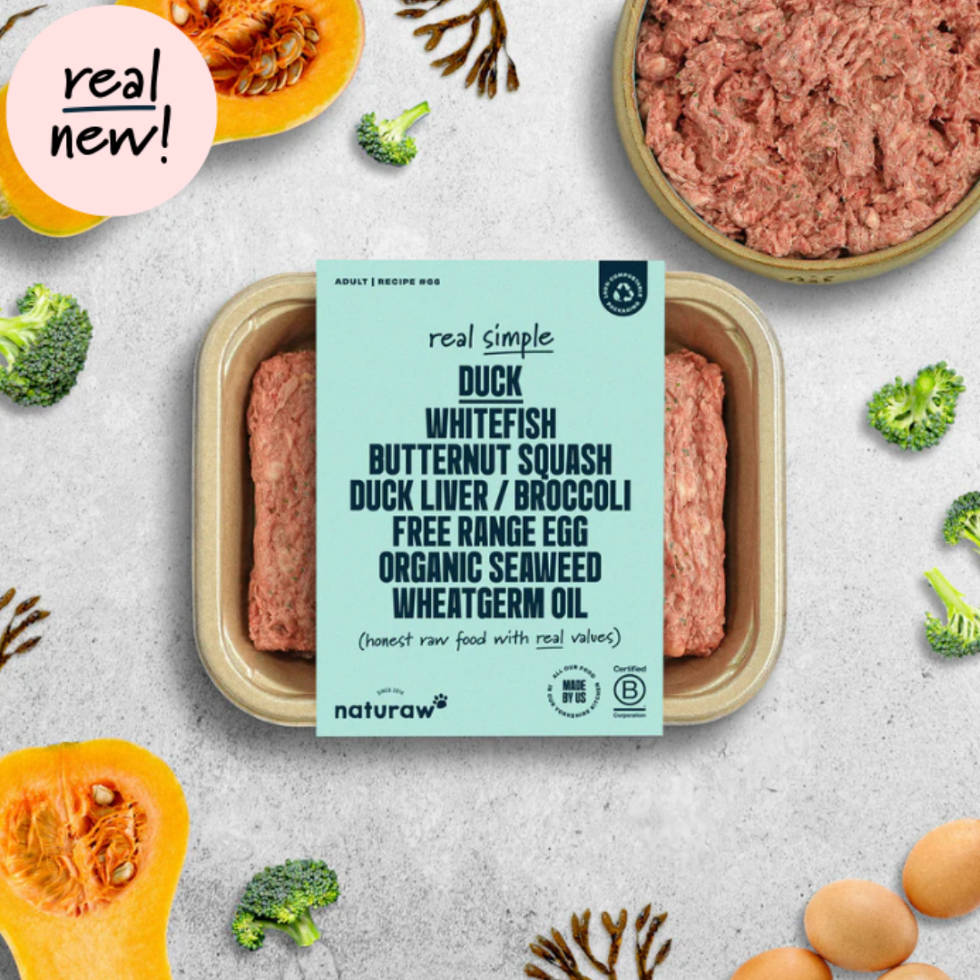 Simple, complete, honest raw food. Uncompromisingly made with the same values as our other ranges. British duck, with fresh whitefish balanced with a dash of fresh veg, free range egg, Scottish seaweed & a touch of wheatgerm oil. Plastic-free packaging. Exceptional done simply.